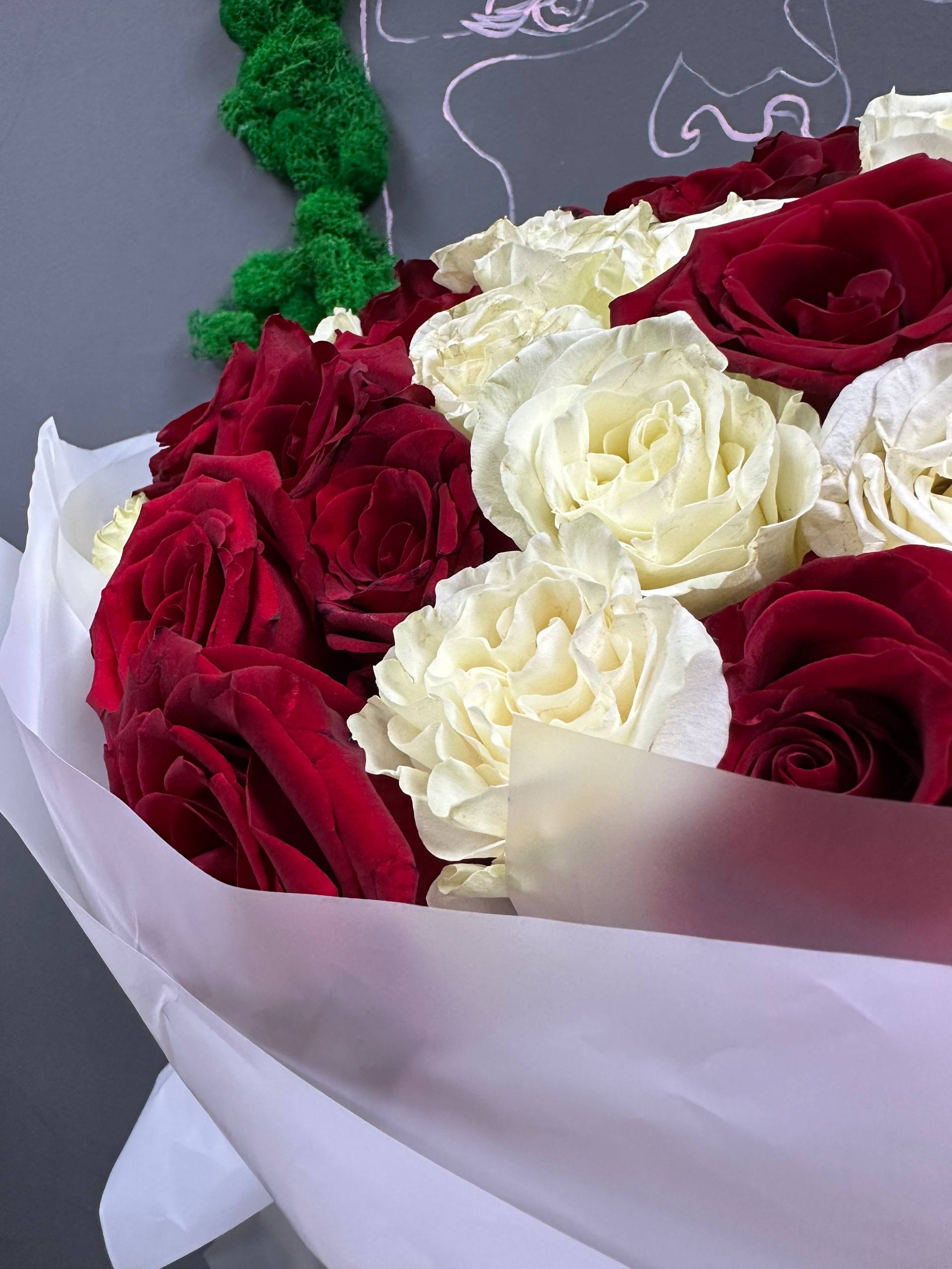 Букет микс из 101 премиальной белой и красной розы